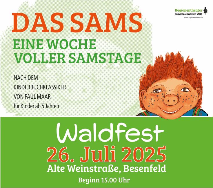 Aufgeführt wird das Theaterstück "Das Sams - eine Woche voller Samstage". Weitere Infos zum Stück erhaltet ihr hier.